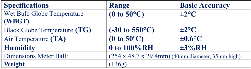 • Black Globe Temperature (TG) monitors the effects of direct